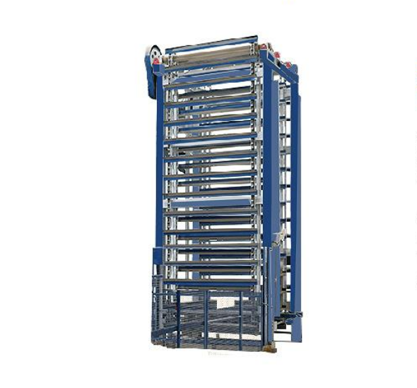 全自動(dòng)托板提升裝置,采用高扭矩,高效率制動(dòng)電機(jī)減速機(jī)的同步結(jié)構(gòu),堅(jiān)固性鋼結(jié)構(gòu),提升用重型鏈,電機(jī)驅(qū)動(dòng),控制和監(jiān)測(cè)由位置開關(guān)和光控限位開關(guān)完成。