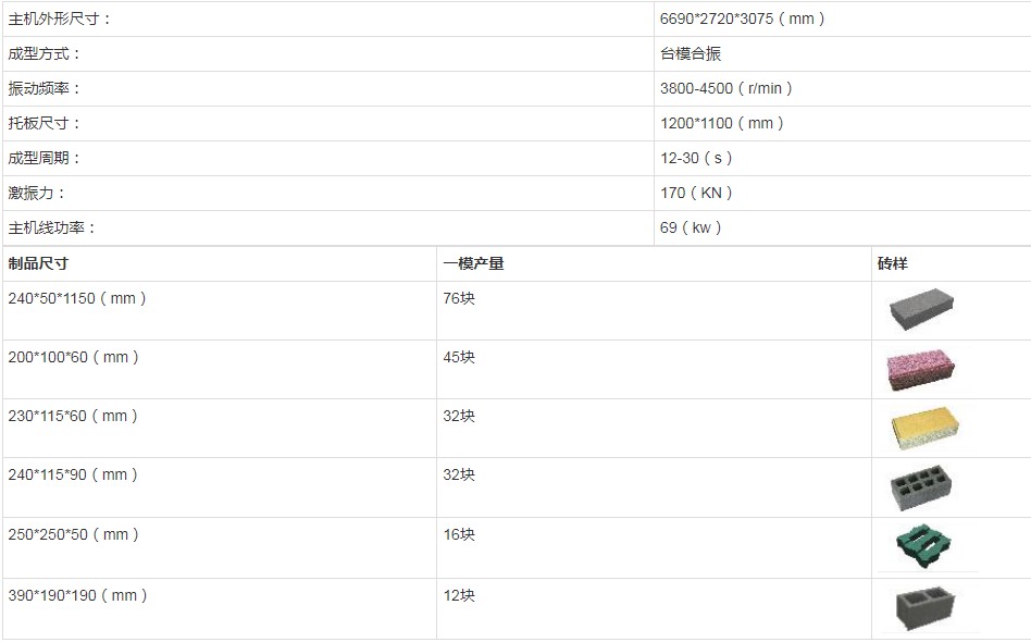 7、振動器采用變頻電機驅動,頻幅可調,對不同原料的磚可獲得良好的振實效果。